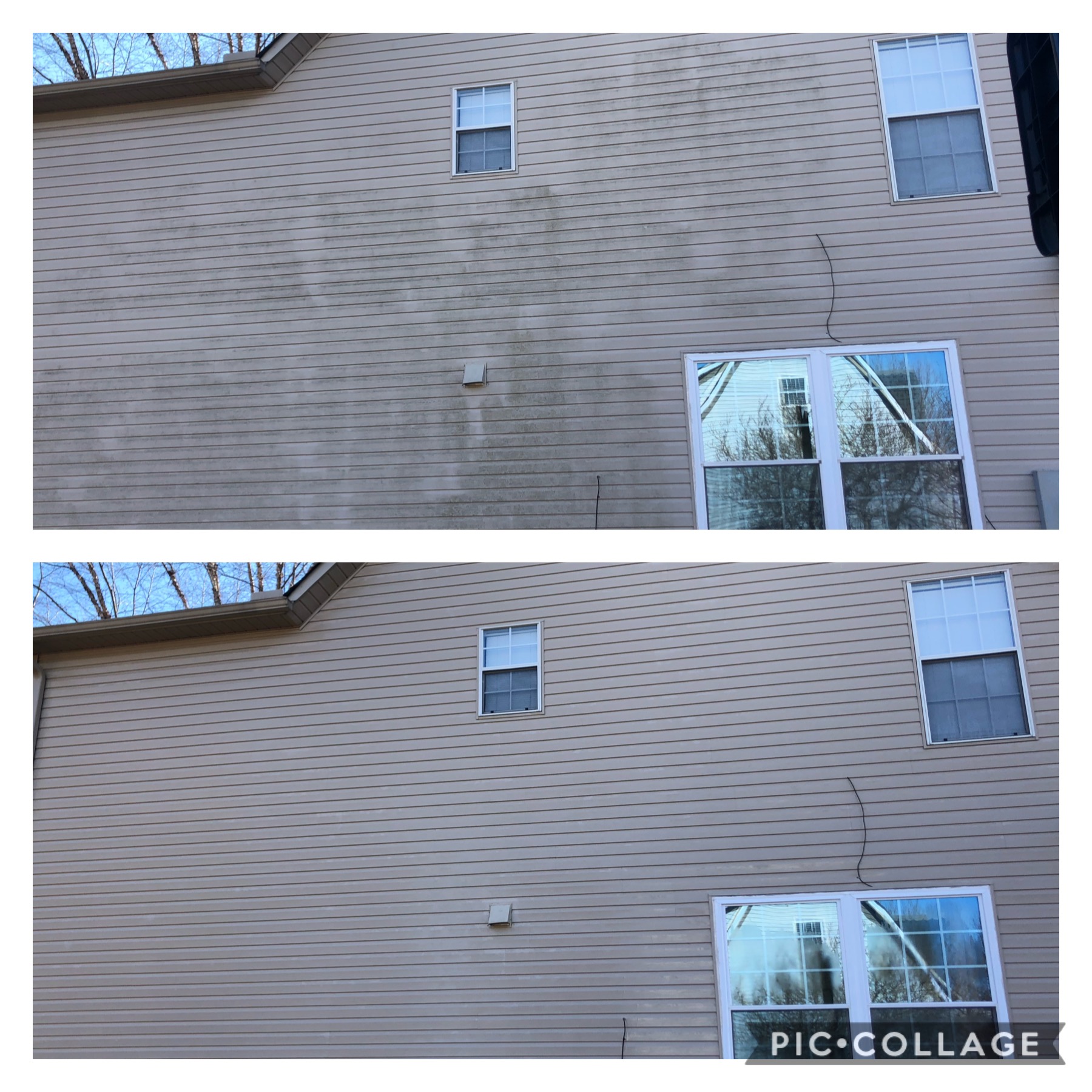 For this project, our team of professional pressure washers completed a softwashing of vinyl siding and a gutter brightening.